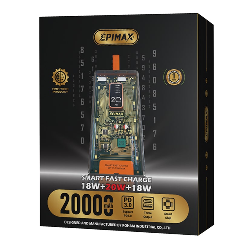 با پاوربانک اورجینال EPIMAX EP-220، همیشه انرژی در دستان شماست! این دستگاه با ظرفیت قدرتمند 20000 میلیآمپر و توان 20 وات، شارژ سریع و مطمئن را برای دستگاههای شما فراهم میکند. طراحی شیک و حمل آسان، آن را به همراهی ایدهآل برای سفرها و روزهای پرمشغله تبدیل کرده است. انرژی بیوقفه را تجربه کنید!